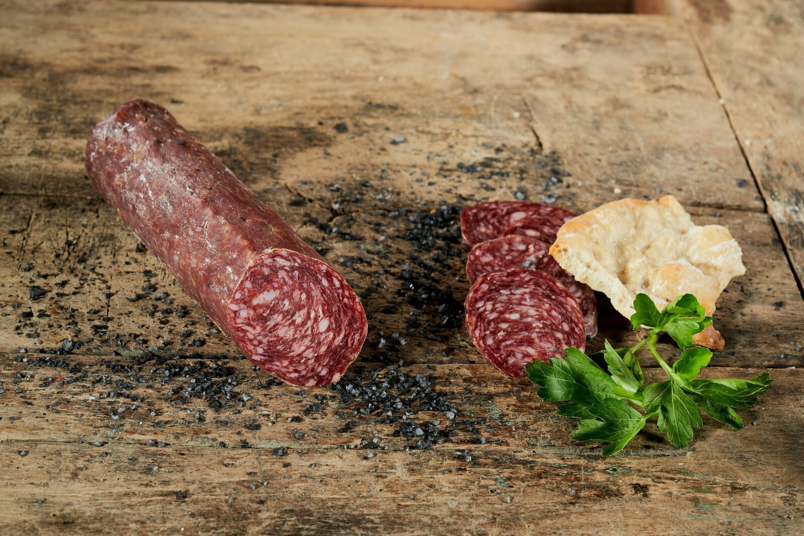 Immer passend zu jeder Brotzeit. Die luftgetrocknete, fein-würzige und sehr magere Rindersalami, rein aus Fleisch von heimischen Rindern hergestellt. Ihr Geschmack ist charakteristisch für Rind und dennoch auch ohne Zusatz von Schweinefleisch nicht trocken im Biss.